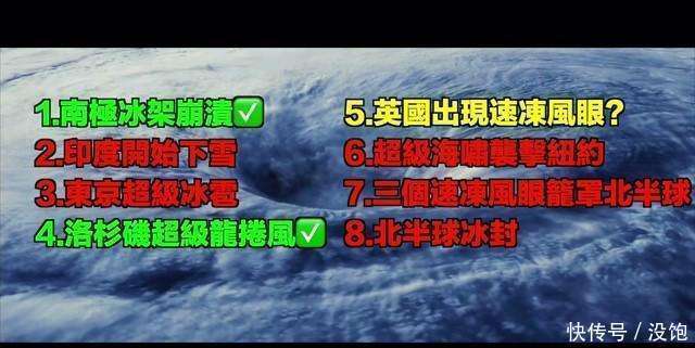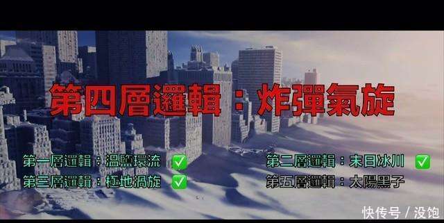举例,影片中最夸张的极速冰冻风暴,也在履行中出现了,这恰是八个形势灾变的第三层逻辑。