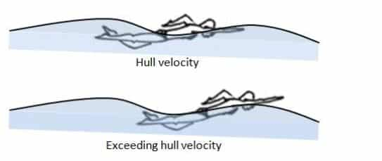 上方的东谈主是以“船体速率”游动,下方的东谈主是以卓著“船体速率”的游动。图片来源:Swimming Science