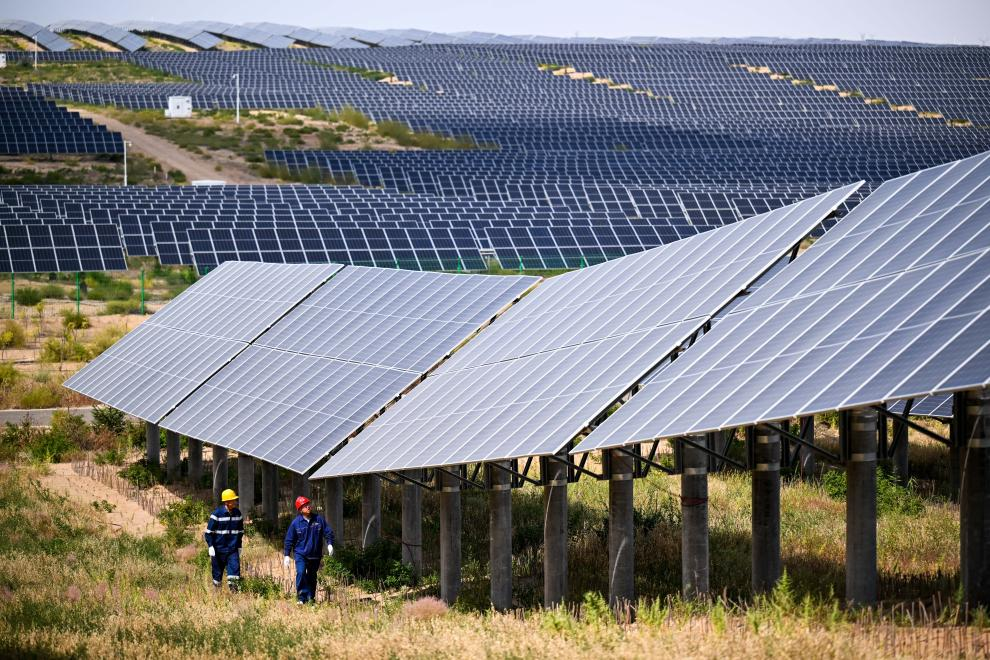 2025年9月10日,工东说念主在位于库布其沙漠的达拉特旗光伏基地巡检。新华社记者李志鹏摄