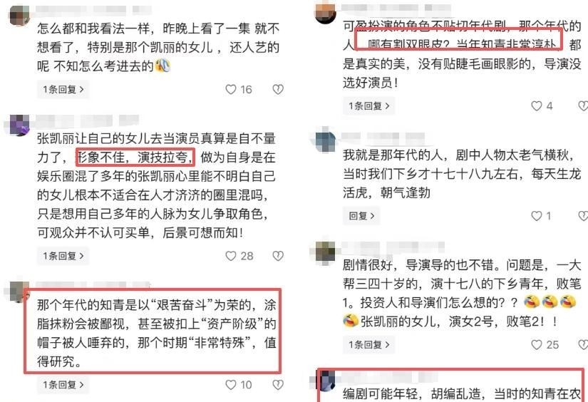 不雅众指出,她顶着浓密如苍蝇腿般的假睫毛、牢固火暴的舞台妆,出演上世纪粗重茂盛的知青变装,方枘圆凿,违和感十足。