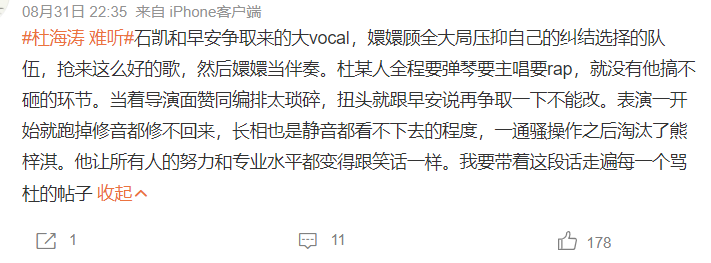 在最新一期节目中,杜海涛再次引起争议,好多网友齐忍不说:“杜海涛能够是甲方”,晨安写好的词,杜海涛淡薄修改,晨安让熊梓淇和宁桓宇弹钢琴,杜海涛念念试一试,效用排演的技术,导演径直暗示他们的歌曲有问题,临了同组的熊梓淇被淘汰。
