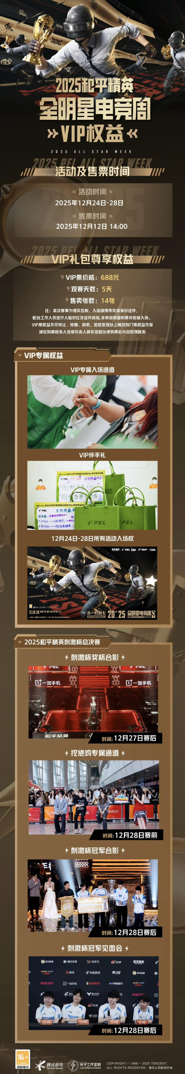 12月24日-12月28日,2025和平精英超等电竞周火热来袭,从一打到七,把把齐刺激!小P带来售票信息~