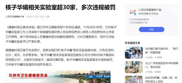 其中引起争议最大的便是张珊珊名下的一个兰州核子华曦试验室,这个试验室因为将核酸检测恶果弄错导被曝。