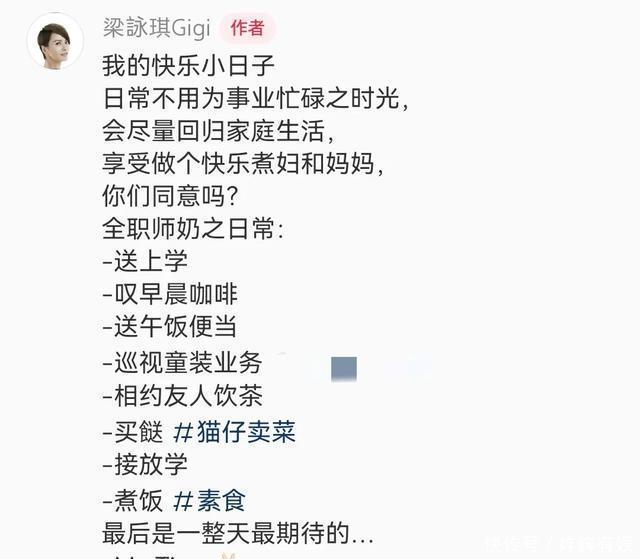 看了梁咏琪的一天日志,不禁感触女明星当姆妈后其实和平方东说念主差未几,需要接送孩子,还需要买菜作念饭,糊口过得有滋隽永,也挺充实的,不少网友感触梁咏琪就差指挥犬子写功课了,其他育儿方面和平方家长差未几。 其实近几年梁咏琪做事发展的也可以,她也一直开演唱会,也一直演影视剧,但如今她的要点在家庭上,她和外籍老公婚后很恩爱,男方面目也挺帅气,还带着犬子现身梁咏琪的演唱会现场,是个合适过日子的男东说念主。