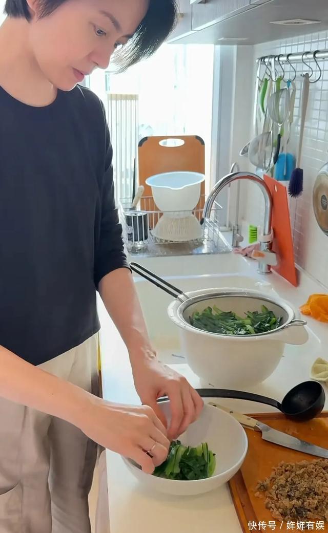 在接到犬子后她才急遽赶回家,固然家里有佣东说念主维护作念饭,但梁咏琪如故会切身下厨作念几说念小菜,她作念饭的手法十分娴熟,调料汁、切菜、炒菜,边炒边尝滋味,作念到半途还让犬子试菜,犬子也十分牛逼,看色彩就知说念对菜品很雕悍。