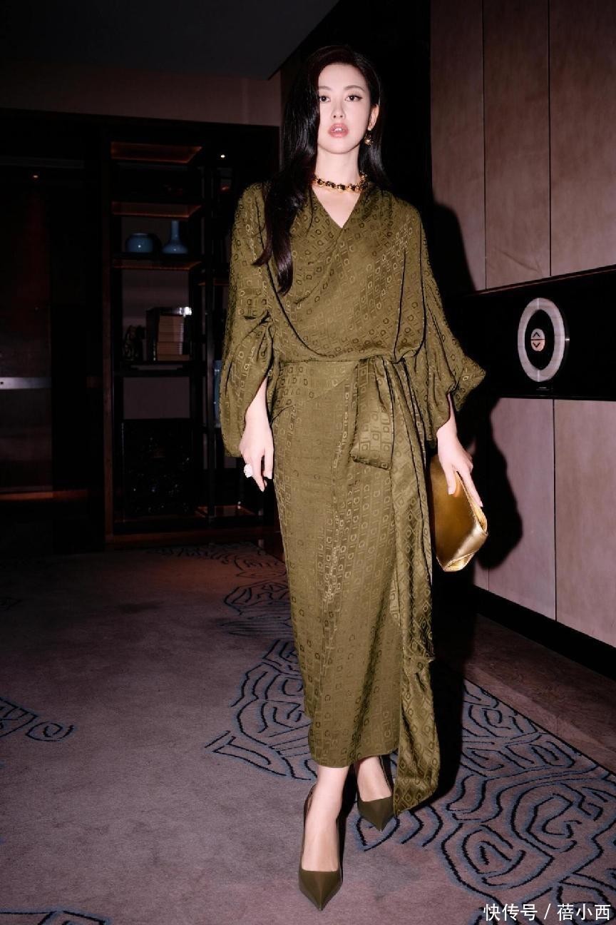 再看朱珠这寂然搭配,一袭橄榄绿色长袍式连衣裙,独有的V领商量,好意思妙修饰了她的颈部线条,增添了几分柔好意思。宽松的蝙蝠袖,随心又大气,藏肉服从一流,手臂粗的好意思眉不错来试试这种连衣裙,比吊带连衣裙更友好。