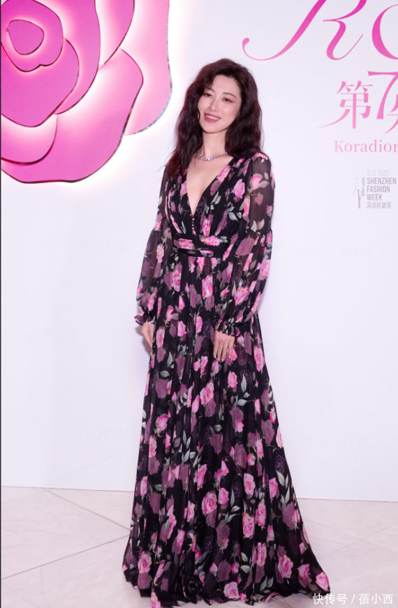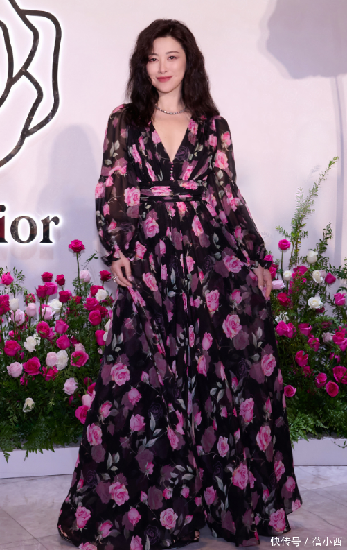 搭配这头油画卷的,是一条极具艺术感的印花连衣裙,连衣裙上的印花绝非世俗的花草图案,而是充满了艺术气味的抽象花草,每一处印花的颜色过渡齐当然指挥,这些印花在连衣裙上参差区分,在视觉上营造出丰富的头绪感,举座的颜色搭配更是果敢而又息争,玄色,绿色与粉色相互交汇,不仅提亮了她的肤色,还让她看起来氛围感拉满。