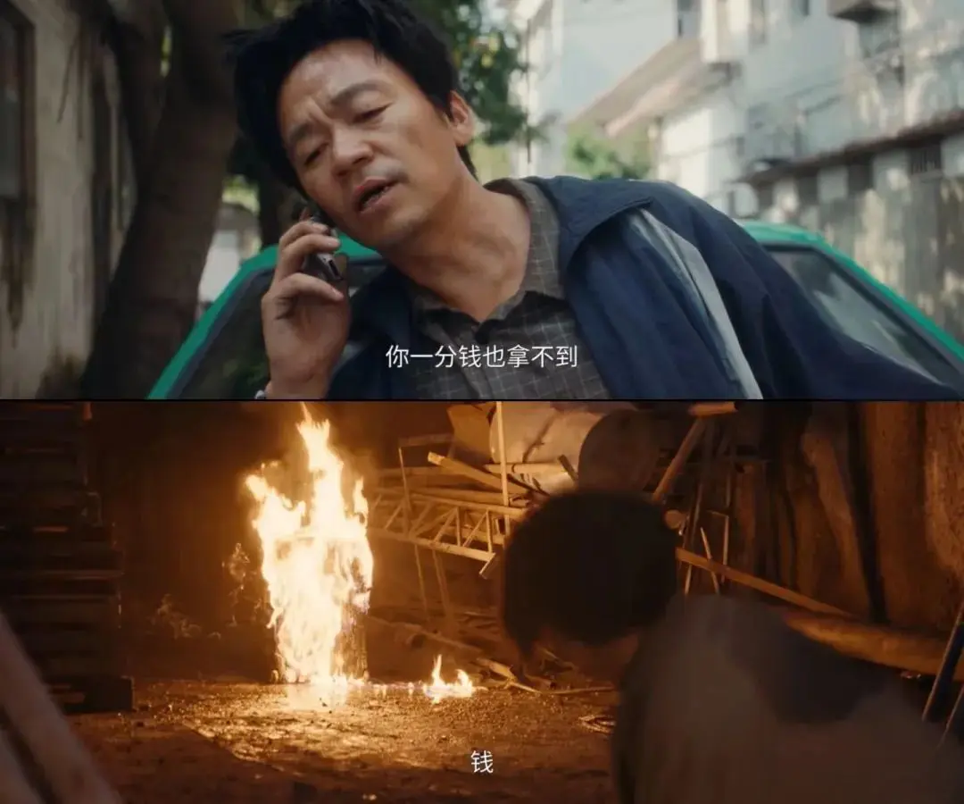 还有看着装钱的行李箱被烧时,那种变态的神气和肢体看成,看着就让不雅众屁滚尿流。