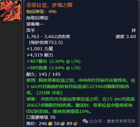 当前巨龙时间的两把橙武分裂是唤魔时专属橙武纳兹乌罗,无拘传承,以及物理系近战双手斧菲莱拉兹,虚幻之瞑,不错由圣骑士,战士,DK使用。