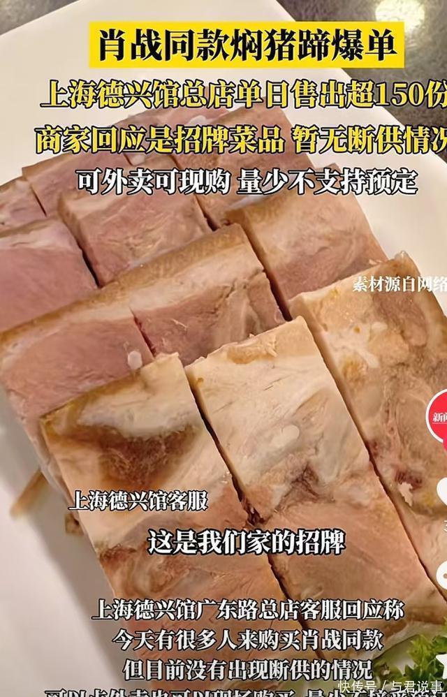 东谈主没升咖,猪蹄先升咖,真实是强如此啊!剧未播,东谈主还未升咖,猪被加速了杀人的节律,真实太狂放了,这是内娱头一份吧! 然则在剧内部,肖战演出的是任少白,臆想这句台词应该只是一个暗号之类的吧,没念念到铸成大错果然径直带火了这份菜。 现在,上海德兴馆总店肖战同款焖猪蹄单日出售超150份凯发·k8国际app娱乐,阐明伙计恢复/;这份菜是店铺的牌号,不会出现断供的情况,不错点外卖不错现场购买,然则不汲取预定!