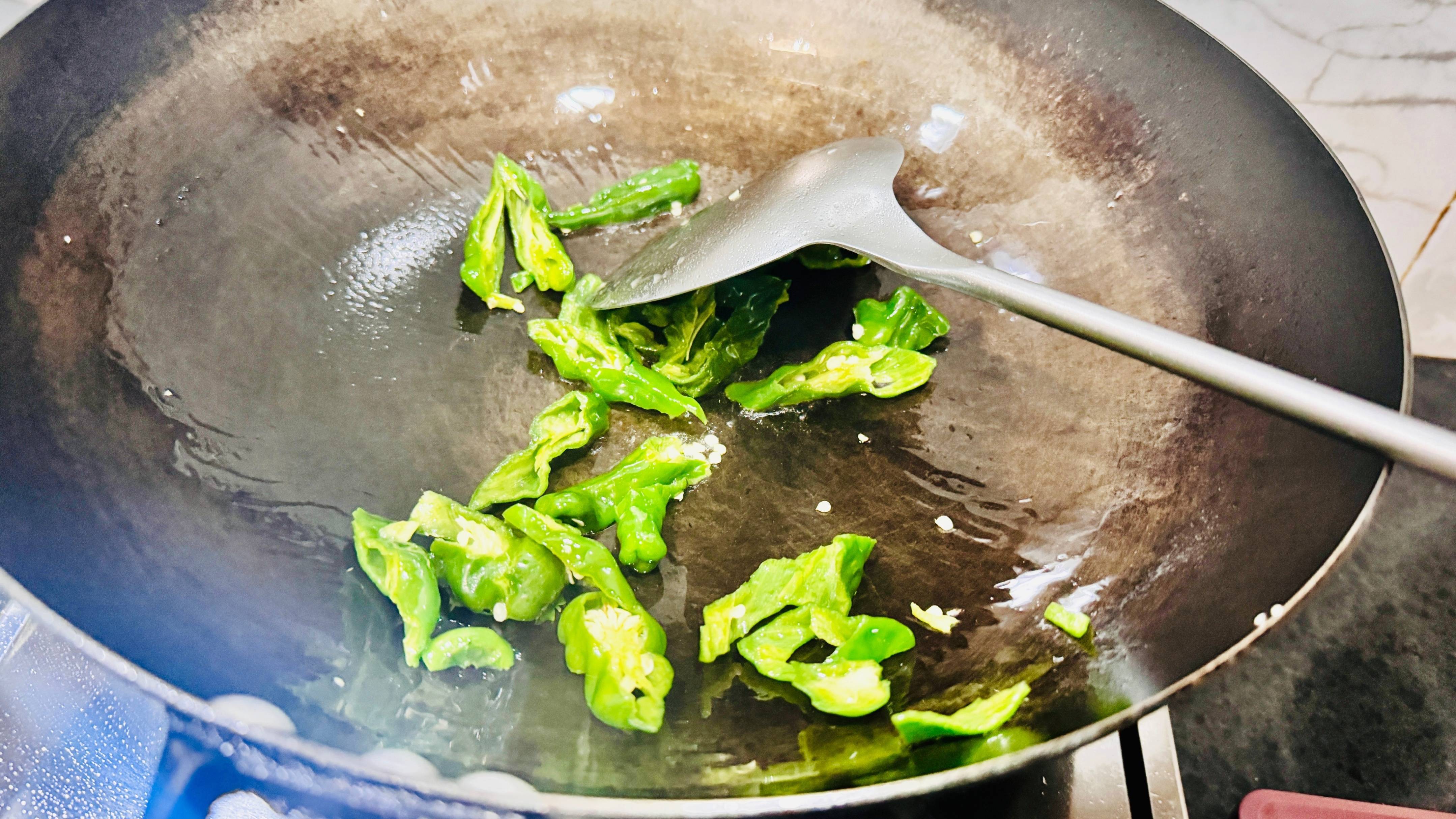 我是先炒辣椒的,这个辣椒是操纵奶奶卖的,说是我方家种的特地辣,这个还真没骗东谈主,是真实很辣的。炒的时分皆炝嗓子呢。