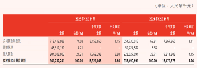记者可贵到,2025年末渤海银行个东说念主贷款不良率从2024年的4.15%降至3.80%。或因“分母”下落,这一主义较其他股份行仍处于偏高水平。