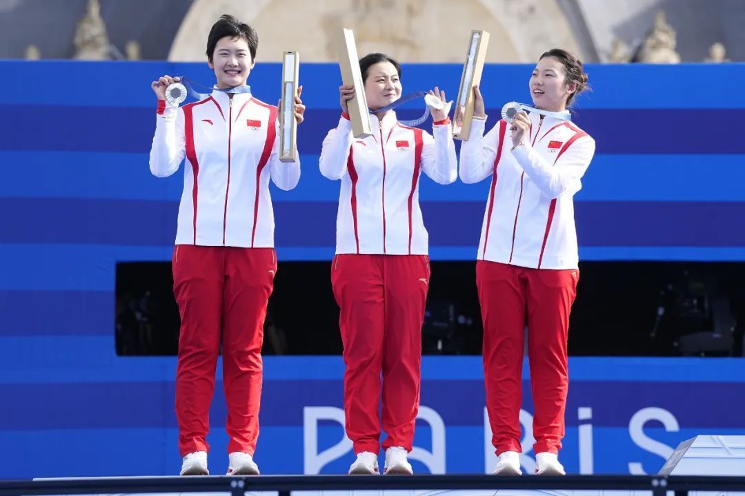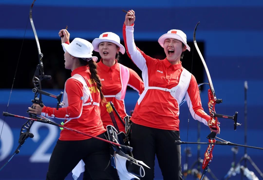 射箭女子团体决赛,由安琦轩、杨晓蕾和李佳蔓构成的中国队以4比5不敌韩国队,得回亚军。