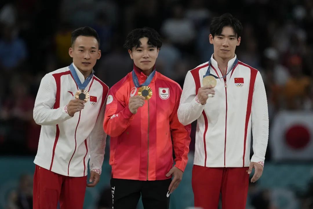 体操须眉个东谈主万能决赛中,中国选手张博恒、肖若腾分裂得回银牌、铜牌,这亦然奥运体操赛场上第一次有两位中国男选手同期站上万能领奖台。